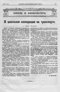 № 1 7 —18. ВЕСТНИК КАРЕЛО-МУРМАНСКОГО КРАЯ. 35 іжтті.Тп^ттг^Ѵ"!.'........ ................... .... ----------- Ч і г ■:....и:..ѵ.” ...............■_ ________ ШКОДА :i Ш Ж¥шт WPM, Г.Г5Т-1..А— ПГ-ТЗГ-ІГН--Т gXSaP •jsSJ : «6 О школьной кооперации на транспорте. (в порядке Вопрос о школьной кооперации на транспорте за последнее время как-то заглох. Возникали отдельные проекты, долго прорабатывались в разных организациях, еще дольше „согласовывались", а воз и ныне там. Жизнь, однако, этих проектов не дождалась: школьные кооперативы на транспорте стали возникать на местах в чисто стихийном порядке. Все это, конечно, указы вает на целесообразность их, но все же эта стихия угрожает принять неправильные уклоны, если на это дело не будет обращено достаточного внимания соот- ветствующлх организаций. До настоящего времени школьная кооперация не получила еше ни твердо-установившегося взгляда, ни определенной линии поведения. В частности, в Ленинграде создались два подхода к школьной кооперации на транспорте. ТПО Мурманской ж д. смотрит на кооператив, как на лабораторию, ТІІО Сев.-Зап.—как на торговое пред приятие с определенным экономическим базисом. Два этих совершенно противоположных взгляда двух ТПО в одном узле показывают, насколько этот вид стихий ного детского движения нов: не устоялся и не вылился в определенные четкие формы. К сожалению еще до сих пор не высказались окончательно по сему поводу педагоги и школьные Советы, которые безусловно в этом вопросе должны быть заинтересованы. Школьная кооперация, ввиду отсутствия опыта и практики в прошлом, требует к себе большей осторож ности, дабы не погубить этот новый и важный вид дет ского движения, возникшего пока произвольно, почти без всяких внешних подталкиваний. Такое положение вещей заставляет органы транспортной кооперации более внимательно присматриваться к этому вопросу и учесть возможные перспективы на ближайший учебный сезон. ТПО Мурманской ж д. еше в октябре мес. пр. года разработало план создания школьных кооперативов на своей линии. Совместно с Дорожным Отделом Просве щения местам были даны по этому вопросу специаль ные ин трукции. По плану ТПО Мурм., задачами таких школьных кооперативов являются: 1) снабжение учащихся по до ступным ценам учебниками, пособиями и письм. прп- дискуссии). надлежностями, 2) забота о кооперативном просвещении школьников посредством практической работы школьных кооперативов Наряду с этими задачами, при развитой коопера тивной организации, предполагаются виды дополнитель ной деятельности: например— содействие правильному питанию учеников посредством устройства ученических столовых и торговли с'естными припасами. ТГіО Мурм., обсудив этот вопрос, признала, что школьная кооперация должна служиіь преимущественно педагогическим целям, а достижение материальных ре зультатов является уже второстепенным заданием Школьным советам предложено выявить свію точку зрения по данному вопросу, при чем одновременно пре дусмотрена организация специальных книжных киосков при школах станций. В первую очередь предпол жено организоватьшколь- ные кооперативы в следующих наиболее крупных пунк тах: Кандалакша (общий, со школою фабзавуча), Кемь, М.-Гора, Петрозаводск (общий для всех школ, или отдельно для станции и города, смотря по местным удобствам), Л.-Поле (со школой фабзавуча), Званка (общий со школой фабза
