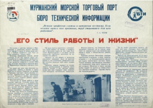 «Его стиль работы и жизни» : [о лоцмане Мурманского морского торгового порта А. А. Трунове : плакат] / Мурм. мор. торговый порт, БТИ. - [Мурманск : б. и.], 1981. - 1 л. : ил. ; 60х42 см.