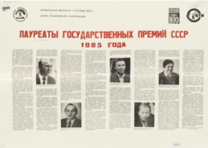 Лауреаты Государственных премий СССР 1985 года : [плакат] / Мурм. мор. торговый порт, Бюро техн. информ. - [Мурманск : б. и.], 1986. - 1 л. : портр. ; 58х84 см.