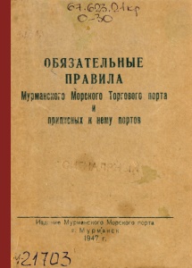 Обязательные правила Мурманского морского торгового порта и приписных к нему портов. - Мурманск : Мурманский Торговый порт, 1947. - 43, [2] с.