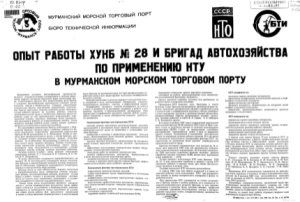 Опыт работы ХУКБ № 28 и бригад автохозяйства по применению КТУ в Мурманском морском торговом порту : [плакат] / Мурм. мор. торговый порт, Бюро техн. информ. - Мурманск : [б. и.], 1987. - 1 л. ; 42х60 см.