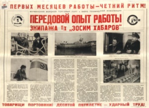 Передовой опыт работы экипажа т/х «Зосим Хабаров» : [плакат] / Мурм. мор. торговый порт, Бюро техн. информ. - [Мурманск : б. и.], 1979. - 1 л. : ил. ; 60х84 см. - (С первых месяцев работы – четкий ритм!).