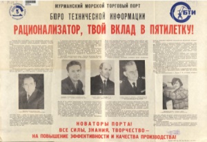 Рационализатор, твой вклад в пятилетку! : [плакат] / Мурм. мор. торговый порт, Бюро техн. инвентаризации. - Мурманск : [б. и.], 1978. - 1 л. : портр. ; 42х60 см.