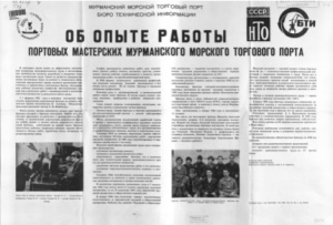 Трофимова, А. В. Об опыте работы портовых мастерских Мурманского морского торгового порта : [плакат] / А. В. Трофимова ; Мурм. мор. торговый порт, Бюро техн. информ. - Мурманск : [б. и.], 1986. - 1 л. : ил. ; 41х59 см.