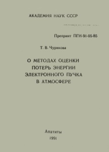 Чурикова Т. В. О методах оценки потерь энергии электронного пучка в атмосфере / Чурикова Т. В. ; Акад. Наук СССР. - Препринт ПГИ-91-05-85. - Апатиты : КНЦ АН СССР, 1991. - 14 с.
