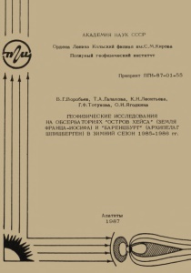Геофизические исследования на обсерваториях «Остров Хейса» (Земля Франца-Иосифа) и «Баренцбург» (Архипелаг Шпицберген) в зимний сезон 1985-1986 гг. / В. Г. Воробьев [и др.] ; Акад. наук СССР, Кол. фил. им. С. М. Кирова, Поляр. геофиз. ин-т. – Препр. ПГИ-87-01-55. - Апатиты : Кольский филиал АН СССР, 1987. - 41 с. : в основном ил.