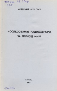 Исследование радиоавроры за период МИМ : сборник трудов / Акад. наук СССР, Кол. фил. им. С. М. Кирова, Поляр. геофиз. ин-т. - Апатиты : [б. и.], 1983. – 96 с.