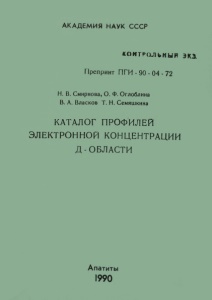 АКАДЕМИЯ НАУК СССР КОНТРОЛЬНЫЙ экз. Препринт ПГИ -90 -04 -72 Н. В. Смирнова, О. Ф. Оглоблина В. А. Власков Т. Н. Семяшкина КАТАЛОГ ПРОФИЛЕЙ ЭЛЕКТРОННОЙ КОНЦЕНТРАЦИИ Д-ОБЛАСТИ Апатиты 1990