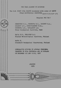 THE USSR ACADEMY OP SCIENCES S.M. KIROV COLA. BRANCH decorated with order of LENIN POLAR GEOPHYSICAL INSTITUTE К0НТР0ЛЬИЫП экз Preprint PGI 79-3 CHERNOUSS S.A., FEDOROVA N.I., LOGINOV G.A., STARKOV G.V., SUKHOIVANENKO P.Ya., TOTUNOVA G.E., YEVLASHIN L.S. Polar Geophysical Institute, USSR KAILA K.U., PELLINEN R.J. Finnish Meteorological Institute, Finland RANTA H. Sodankyla Geophysical Observatory, Finland COMPARATIVE STUDIES ON AURORAL PHENOMENA OBSERVED IN KOLA PENINSULA AND IN FINLAND CN DECEMBER 1/2 AND 11/12, 1977 APATITY 1979