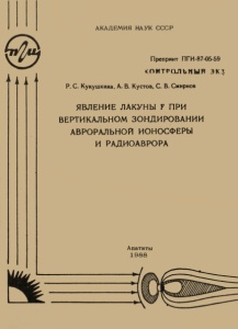 Кукушкина, Р. С. Явление лакуны F при вертикальном зондировании авроральной ионосферы и радиоаврора / Р. С. Кукушкина, А. В. Кустов, С. В. Смирнов ; Акад. наук СССР, Кол. фил. им. С. М. Кирова, Поляр. геофиз. ин-т. – Препр. ПГИ-87-05-59. - Апатиты : Кольский филиал АН СССР, 1988. - 13 с. : ил.