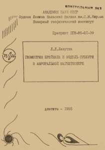 Лазутин, Л. Л. Геометрия брейкапа и модель суббури в авроральной магнитосфере / Л. Л. Лазутин ; Акад. наук СССР, Кол. фил. им. С. М. Кирова, Поляр. геофиз. ин-т. - Препр. ПГИ-85-01-39. – Апатиты : Кольский филиал АН СССР, 1985. - 47 с. : ил.
