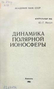 Мизун Ю. Г. Динамика полярной ионосферы / Акад. наук СССР, Кол. фил. им. С. М. Кирова, Поляр. геофиз. ин-т. – Апатиты : Кольский филиал АН СССР, 1986. – 140 с.