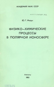 Мизун Ю. Г. Физико-химические процессы в полярной ионосфере / Мизун Ю. Г. ; Акад. наук СССР, Кол. фил. им. С. М. Кирова, Поляр. геофиз. ин-т. – Апатиты : Кольский филиал АН СССР, 1983. – 130 с.