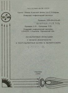 Пудовкин, А. И. Геомагнитные пульсации у земной поверхности и гидромагнитные волны в магнитосфере / Пудовкин А. И., Пудовкина Е. В. – Препр. ПГИ 90-10-78. – Апатиты : [б. и.], 1986. – 24 с.