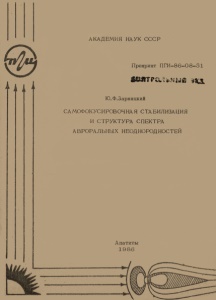 Зарницкий, Ю. Ф. Самофокусировочная стабилизация и структура спектра авроральных неоднородностей / Ю. Ф. Зарницкий ; Акад. наук СССР, Кол. фил. им. С. М. Кирова, Поляр. геофиз. ин-т. - Препр. ПГИ-86-08-51. - Апатиты : Кольский филиал АН СССР, 1986. - 32 с. : ил.