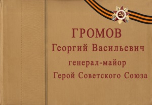 Громов Георгий Васильевич, генерал-майор Герой Советского Союза [Изоматериал : электронный ресурс] : [фотоальбом / материал собр. учащимися восьмилет. шк. пос. Килп-Явр Мурм. обл.]. – Электрон. дан. (1 файл : 26,2 МБ). – (Мурманск : Мурманская государственная областная универсальная научная библиотека, 2015). – Режим доступа: http://www.kolanord.ru. – Загл. с экрана. – Место хранения оригинала: средняя школа пос. Килп-Явр Мурманской области.