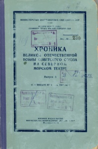 Хроника Великой Отечественной войны Советского Союза на Северном морском театре. Вып. 8. (С 1 января – 9 мая 1945 г.) / Министерство Вооруженных Сил Союза ССР, Главный штаб Военно-Морских Сил, Исторический отдел ; сост.: Соколов Д. В., Муратханов К. М. ; под. ред. Круглова В. И., Соколова Д. В. – Москва : Военное издательство Министерства Вооруженных Сил Союза ССР, 1949. – 214 с. : карты.