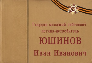 Юшинов Иван Иванович, гвардии младший лейтенант, лётчик-истребитель [Изоматериал : электронный ресурс] : [фотоальбом] / материал собр.: Хмелева Надя и др. ; восьмилет. шк. пос. Килп-Явр Мурм. обл. – Электрон. дан. (1 файл : 12,4 МБ). – (Мурманск : Мурманская государственная областная универсальная научная библиотека, 2015). – Режим доступа: http://www.kolanord.ru. – Загл. с экрана. – Место хранения оригинала: средняя школа пос. Килп-Явр Мурманской области.