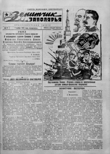 С М Е Ѵ Т Ь Н Е М Е Ц К И М О І І К У І І А П Т А м нимашс— ЗАПОЛЯРЬЯ К Р А С Н О Ф Л О Т С К А Я Г А З Е Т А № 13 I 7 ноября 1S43 года, воскресенье. ПРОЧТИ И ПЕРЕДАЙ ТОВАРИЩУ У К А З ПРЕЗИДИУМА ВЕРХОВНОГО СОВЕТА СОЮЗА ССР Онаграждени орденом Суворова 1 степени Маршала Советского С оюза Сталина Иосифа Виссарионовича, За пр а вил ьно е руков одс т во операциями Красной Армии в От ече с тв енной войне про тив немецких з ахва т ­ чиков и до с ти гну тые успехи наградить М а р ш а л а С о в е т с к о г о С о ю з а Иосифа Виссарионовича Сталина орденом Су в оро в а 1 степени. Председатель' Президиума Верховного Совета СССР М. КАЛИНИН. Секретарь Президиума Верховного Совета СССР А. ГОРКИН. Москвп, Кремль. 6 ноября 1043 года. ---------------- ® ---------------- Слава героям Днепра! Замеча т ельной поб е дой ознаменовала Кра сная Армия XXVI г одо вщину Октября : 6 ноября она освободила от немецких о ккуп ан т о в с толицу Украины г ород Киеп — крупный промышл енный центр и важнейший с тр а те гичес ­ кий уз ел немцев на пр а вом б е р е г у Днепра. Че с ть и слава добле с тным бойцам и офицерам Красной Армии, о с в обожд ающим родную землю от гитл еровских захва тчиков ! XXVI ЛЕТ ВЕЛИКОГО ОКТЯБРЯ 26-ю годовщину Великого Октября мы отмечаем в дни радостных побед. За неполных 4 месяца Крас­ ная Армия добилась замеча­ тельных успехов. Иод ее все­ сокрушающими ударами враг отступает, неся- огромные по­ тери в живой силе и технике. Не может фашистская Герма­ ния восполнить эти потери, а наши войска, освободив от гитлеровцев территорию в 350 тысяч квадратных километров, овладев важнейшими в страте­ гическом и экономическом отношении городами, получили еще больше возможностей, что­ бы до конца выполнить свою освободительную миссию— окончательно разгромить не­ мецко-фашистских захватчи­ ков, изгнать их с советской земли. Плечом к плечу с Красной Армией сражаются с заклятым врагом военные моряки. В смелых и умелых боевых действиях моряков Северного флота есть доля труда и зенит­ чиков. Более 100 самолетов сбили они за время войны. Правительственными наградами отметила Родина боевую рабо­ ту лучших, наиболее отличив­ шихся краснофлотцев, сержаи тов и офицеров. Ордена „Красно­ го Знамени'*, удостоен один из наших зенитных дивизионов . Батареи ІІророкова, Леоненко, Исаева, Ііоротюка, Худякова и РЯД Других показали образцы артиллерийского мастерства. Іолько за последние недели батарея капитана Исаева сбила Два вражеских истребителя, причем, одни из них прямым попаданием. На одни н і постов ВНОС спикировал ,,Мессершмитт“ . Пикто нз личного состава не дрогнул, не испугался. Огнем зенитных пулеметов самолет был сбит. Все участники неравного поединка, во с командиром поста сержантом Малкипымнагражде 1 ы ми Советского Союза. В их делах, как и в делах сотен других зенитчиков, живут героические традиции русских моряков. *Sr4 Великий Ленин указывал, что лучший способ отпраздно­ вать годовщину—это сосредо­ точить внимание на нерешен­ ных задачах. Такой нерешен­ ной задачей в нынешнюю го­ довщину является разгром и уничтожение немецких захват­ чиков. На решение этой зада­ чи—все силы, все средства! Выполним ее,—вернем мир, обеспечим счастливую и ра­ достную жизнь! Враг надломлен, но не слом­ лен,1: значит, нельзя успокаи­ ваться достигнутыми успехами, надо усилить удары по немец­ кой авиации, безустали совер­ шенствовать бо