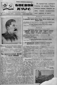 рои по водная ш і і ш г . іяженные поиски из дней командир в шерискюи, обна- кий транспорт , с На приветствие любимого Сталина, на награды Родины ответим новыми боевыми де лами, новыми сокрушитель ными ударами по врагу! Военному Совету Северного флота ГОЛОВКО, НИКОЛАЕВУ. Поздравляю командиров и краснофлотцев с 10-й годовщиной Северного флота и желаю новых успехов в борьбе с немецкими захват чиками. И. СТАЛИН. У К А З Президиума Верховного Совета СССР Онаграждении орденом Красного Знамени бригады подводных лодок Северного Флота За образцовое выполнение боевых зада ний Командования на фронте борьбы с немецкими захватчиками и проявленные при атом доблесть и мужество н а гр а д и т ь орде ном Красного Знамени б р и га д у п о д в о д ны х лодок С е ве рн о го флота. I Председатель Президиума В е р х о в н о го 'Совета СССР М. К А Л И Н И Н . ' ' Сенретарь Президиума В е р х о в н о го Совета СССР А . ГО РНИН . Москва, Кремль. 24 июля 1943 года. У К А З Президиума Верховного Совета СССР О награждении орденом Красного Знамени эскадренного миноносца „Куйбышев", подводных лодок „Щ-403", „Щ-404", 5 дивизиона сторожевых катеров и 73 зенитного артиллерийского полка За образцовое выполнение боевых заданий Командования на фронте борьбы с немец кими захватчиками и проявленные при этом доблесть и мужество наградить; ѵ ОРДЕНОМ 'КРАСНОГО ЗНАМЕНИ 1. Эскадренный миноносец «Куйбышев». 2. Подводную лодку «Щ-403». 3. Подводную лодку «Щ-404». 4. 5-й дивизион сто.ролісвых катеров. 5. 73-й зенитный артиллерийский полк. Председатель Президиума В е р х о в н о го Совета СССР М. К А Л И Н И Н . Секретарь Президиума В е р х о в н о го /С о в е т а £ С С Р А . ГО Р Н И Н . Москва, Кремль. 24 июля 1943 года, В НАРОДНОМ КОМИССАРИАТЕ ВОЕННО- МОРСКОГО ФЛОТА СОЮЗА СССР Под краснознаменным флагом — к новым победам! Боевые подвиги советских подводников-североморцев —* гор дость Военно-Морского Флота, гордость всей страны. Под славными гвардейскими и краснознаменными флагами сра жаются многие североморские подводные лодки, отличившиеся в боях за Родину. Указом Президиума Верховного Совета СССР бригада подводпых лодок Северного флота награжде на орденом Краспого Знамени. В строй гвардейских и краснозна менных кораблей вошли новые подводные лодки. Честь и слава героям Отече ственной ВОЙНЫ — НОВОМУ ОТ РЯДУ гвардейцев и краснозна менцев! Приветствие товарища Сталина североморцам и высокие награды правительства — великий почет *ля каждого подводника. Этот почет обязывает нас усилить свою боевую активность, повы- сить свое воинское мастерство, !Іе Успокаиваться на достигну- Т°М, не зазнаваться, множить паши удары по врагу, множить Нашп боевые уснехп. Краснофлотцы и младшие командиры подводники должны брать пример доблести и воин ского мастерства у своих това рищей — гвардейцев и красно знаменцев. Нужно уметь нести иабліодатольпуіо вахту так же зорко и бдительно, как гвардии старший краснофлотец Беседин, давать точный пеленг командиру для атаки, каж гвардии старшина 1-й статьи акустик Шумихин, Достойно отвечает на привет ствие товарища Сталина экипаж ■Краснознаменной подводной' лод ки, где парторгом тон. Ляшенко. Эта подлодка в День Военно- Морского Флота и 10-летия Се верного флота вернулась из боевого похода, возвестив о своей победе, двумя традиционными вы стрелами. Потоплены два фа шистских корабля. Так выра жают по