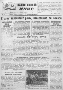 Б О Е В О Й К Р А С Н О Ф Л О Т С К А Я Г А З Е Т А ★ ★ Нам необходимо полностью лик видировать последствия хозяйни чания немцев в районах, осво божденных от немецкой оккупации. Это большая общенародная зада ча. Мы можем и должны решить эту трудную задачу в короткий срок. № 4 2 8 и ю н я 1 9 4 5 г . , п я т н и ц а ПРОЧТИ И П ЕРЕД АЙ Т О В А Р ИЩ У . И Сталин. Страна залечивает раны, нанесенные ей войной ВОССТАНОВЛЕНИЕ ЗАВОДА „БОЛЬШЕВИК" В ноябре 1941 года, когда иссякли запасы мазута и враже ские снаряды перебили комму никации мартеновского цеха, остановились мартены завода «Большевик». Но завод продол жал работать. В самые тяжелые дни блокады люди не уходили от станков, продолжали давать про дукцию фронту. В августе 1943 года, когда враг еще стоял во круг Ленинграда и подвергал его артиллерийскому обстрелу, была вновь пущена в ход первая мар теновская печь «Большевика»; Ято была первая сталь, которую город Ленина, находясь во вра жеской осаде, дал стране и фронту. Вслед за этим на заводе были пущены в ход еще 2 мар теновские печи. па-днях коллективом завода одержана новая большая произ водственная победа - пущена і эксплоатацию самая мощная в Ленинграде 80-тонная марте новская печь. Тем самым в эк сплоатацию вошел весь ново- мартеновский цех. Завод дости гает по выплавке стали своей довоенной мощности. Коллектив завода «Больше вик» во внеурочное время отра ботал свыше полумиллиона че ловеко-часов на восстановлении завода и родного города. Пуск ново-мартеновского це ха завершает ту огромную рабо ту по восстановлению производ ственной мощи завода, которую проделал коллектив «Большеви ка» после освобождения родного города от блокады. Полные лютой ненавистью к нашему наро ду, немецкие фашисты опустошали советскую землю. Германское номандование прямо предпи сывало отступавшим немецким войскам: «Все. что не может быть эвакуировано, подлежит раз рушению, в особенности: водонапорные и элек трические станции, шахты, заводские сооруже ния, средства производства всех видов, урожай, который не может быть вывезен, деревни и до ма... Разрушения следует произвести не в по следний момент, когда войска будут уже вести бои или отступать, а своевременно». Сломав хребет гитлеровеной армии и начав ее изгнание из пределов нашего государства, наш народ, большевистская партия сразу же взялись за возрождение хозяйства и культуры на вызволенной земле, Наше социалистическое государство оказалось достаточно сильным для того, чтобы еще в ходе войны, в самые решаю щие ее периоды, выделить значительные сред ства на восстановительные работы. Преимуще ства советского строя позволили нам направить огромные ресурсы на возрождение жизни в ос вобожденных районах без ущерба для фронта. Сейчас, ногда период войны в Европе кон чился и начался период мирного развития, на ша Родина сможет направить большие людские и материально-технические ресурсы для работы в освобожденных районах. Быстро залечив ра ны, нанесенные войной, наше государство ста нет еще крепче, Мы хотим и мы будем пожинать великие плоды великой победы! ДОНБАСС ДАЕТ УГОЛЬ СТРАНЕ Донецкий каменноугольный бассейн основная топливная база Советского Союза — до Отечественной войны давал око ло 60 проц. всей добычи ІІар- комугля. На шахтах имелось около 3.000 врубовых машин, более 11.000 отбойных молот ков, 1.400 электровозов. Уголь ная 