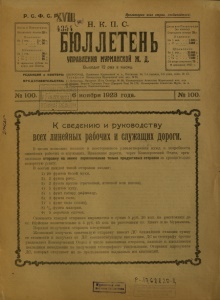 Бюллетень Управления Мурманской ж. д. 1923 г. № 100.