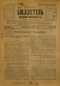 Бюллетень Управления Мурманской ж. д. 1923 г. № 105.