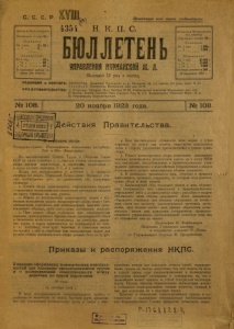 Бюллетень Управления Мурманской ж. д. 1923 г. № 108.