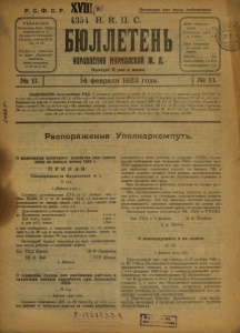 Бюллетень Управления Мурманской ж. д. 1923 г. № 11.