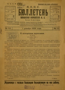 Бюллетень Управления Мурманской ж. д. 1923 г. № 113.