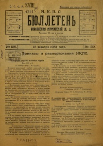 Бюллетень Управления Мурманской ж. д. 1923 г. № 120.