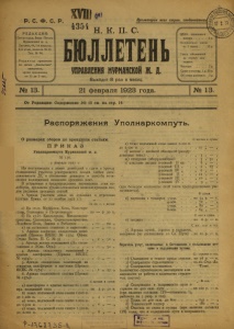 Бюллетень Управления Мурманской ж. д. 1923 г. № 13.