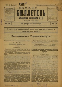 Бюллетень Управления Мурманской ж. д. 1923 г. № 14.