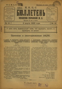 Бюллетень Управления Мурманской ж. д. 1923 г. № 16.