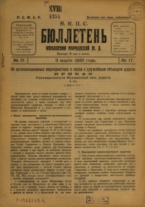 Бюллетень Управления Мурманской ж. д. 1923 г. № 17.