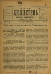 Бюллетень Управления Мурманской ж. д. 1923 г. № 18.