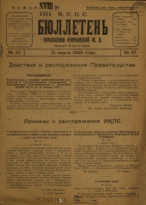 Бюллетень Управления Мурманской ж. д. 1923 г. № 27.