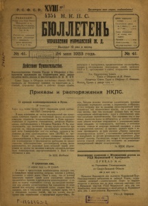 Бюллетень Управления Мурманской ж. д. 1923 г. № 41.