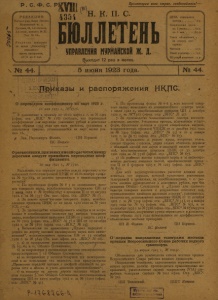 Бюллетень Управления Мурманской ж. д. 1923 г. № 44.