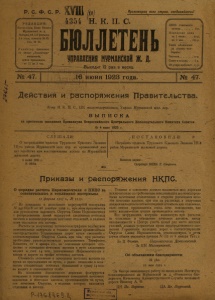 Бюллетень Управления Мурманской ж. д. 1923 г. № 47.