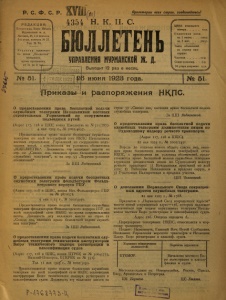 Бюллетень Управления Мурманской ж. д. 1923 г. № 51.