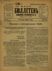 Бюллетень Управления Мурманской ж. д. 1923 г. № 57.