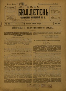 Бюллетень Управления Мурманской ж. д. 1923 г. № 58.