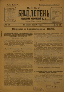 Бюллетень Управления Мурманской ж. д. 1923 г. № 61.