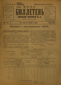 Бюллетень Управления Мурманской ж. д. 1923 г. № 62.