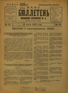 Бюллетень Управления Мурманской ж. д. 1923 г. № 63.