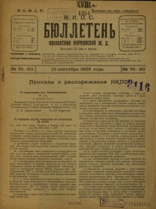 Бюллетень Управления Мурманской ж. д. 1923 г. № 79-80.