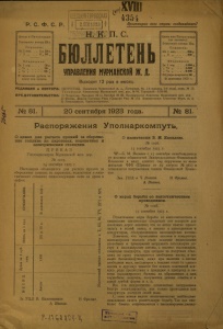 Бюллетень Управления Мурманской ж. д. 1923 г. № 81.