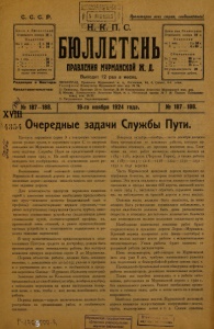 Бюллетень Правления Мурманской ж. д. 1924 г. № 187-188.