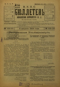 Бюллетень Управления Мурманской ж. д. 1924 г. № 109-110.